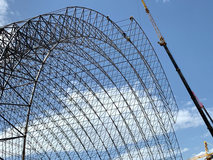(2)网架加工前应对现场尺寸进行复测,确认无误后方可进行加工、安装;网架制作、运输、安装应遵守《空间网格结构技术规程》JGJ7-2010、《钢网架瑞昌螺栓球节点》JG/T 10-2009、《钢网架瑞昌螺栓球节点用高强度螺栓》 GB/T 16939-2016、《瑞昌钢结构瑞昌工程瑞昌施工规范》 GB50755-2012、《瑞昌钢结构瑞昌工程施工质量验收标准》 GB50205-2020。
