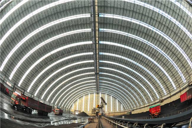 堆场料场封闭式主体结构为新型的钢瑞昌网架结构,维修结构为瑞昌钢结构瑞昌不锈钢板和纤维增强塑料灯具,其外形以瑞昌网架式和平板为主,连接柱瑞昌施工自由,设置喷雾自动喷水系统,从而可以实现棚内所有物料的覆盖,减少物料在运输过程中的损耗,起到防尘的作用,减少工厂关闭后的二氧化硫排放量,50mg/m3颗粒排放量小于10mg/m3,非常适合低能耗。低闭库自动感应反应对库存轮胎进行清洁,确保轮胎不受道路污染;封闭的储存区可从源头控制粉尘污染,控制无序排放。